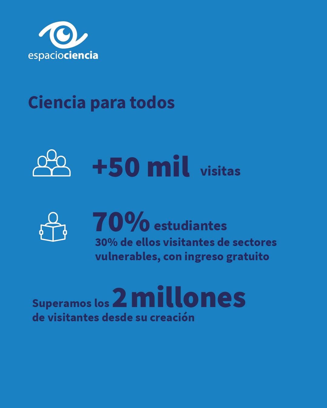 Espacio Ciencia, nuestro museo interactivo de ciencia, tuvo más de 50 mil visitas, siendo el 70 % estudiantes y 30 % visitantes de sectores vulnerables, con ingreso gratuito.