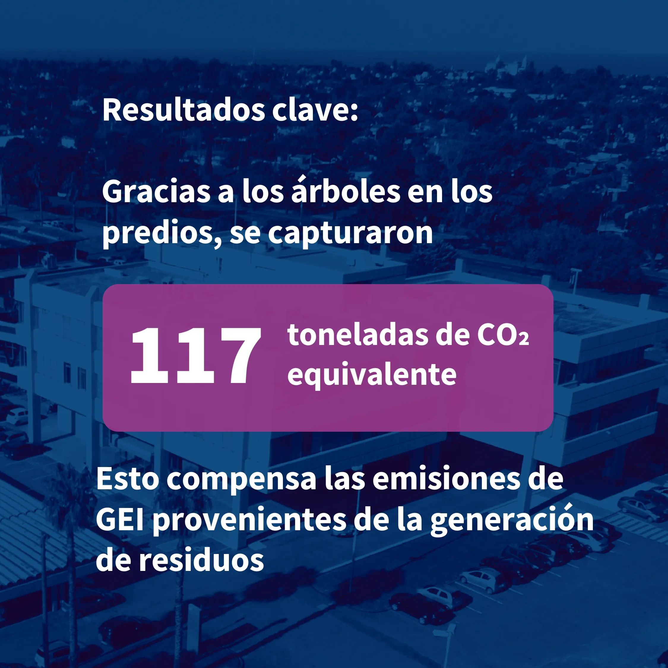 El nuevo inventario cuantificó 1686 tCO2 equivalente y registró 117 tCO2 equivalente de remociones biogénicas gracias a su cobertura arbórea.